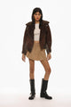 Jacket with a faux fur lapel collar and long sleeves. Featuring two side zip pockets, faux fur trim on the hem and cuffs of the sleeves, a zip-up front, a built-in belt at the hem and buckle fastening at the neck.