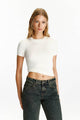 A classic short-sleeve T-shirt featuring a comfortable round neckline, designed for everyday wear. Crafted from high-quality ribbed knit fabric, this piece offers a soft texture and a stylish, fitted silhouette, making it a versatile addition to any wardrobe.