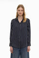 Straight, long sleeve shirt with a shirt collar and a button-up front. Made of satin fabric.